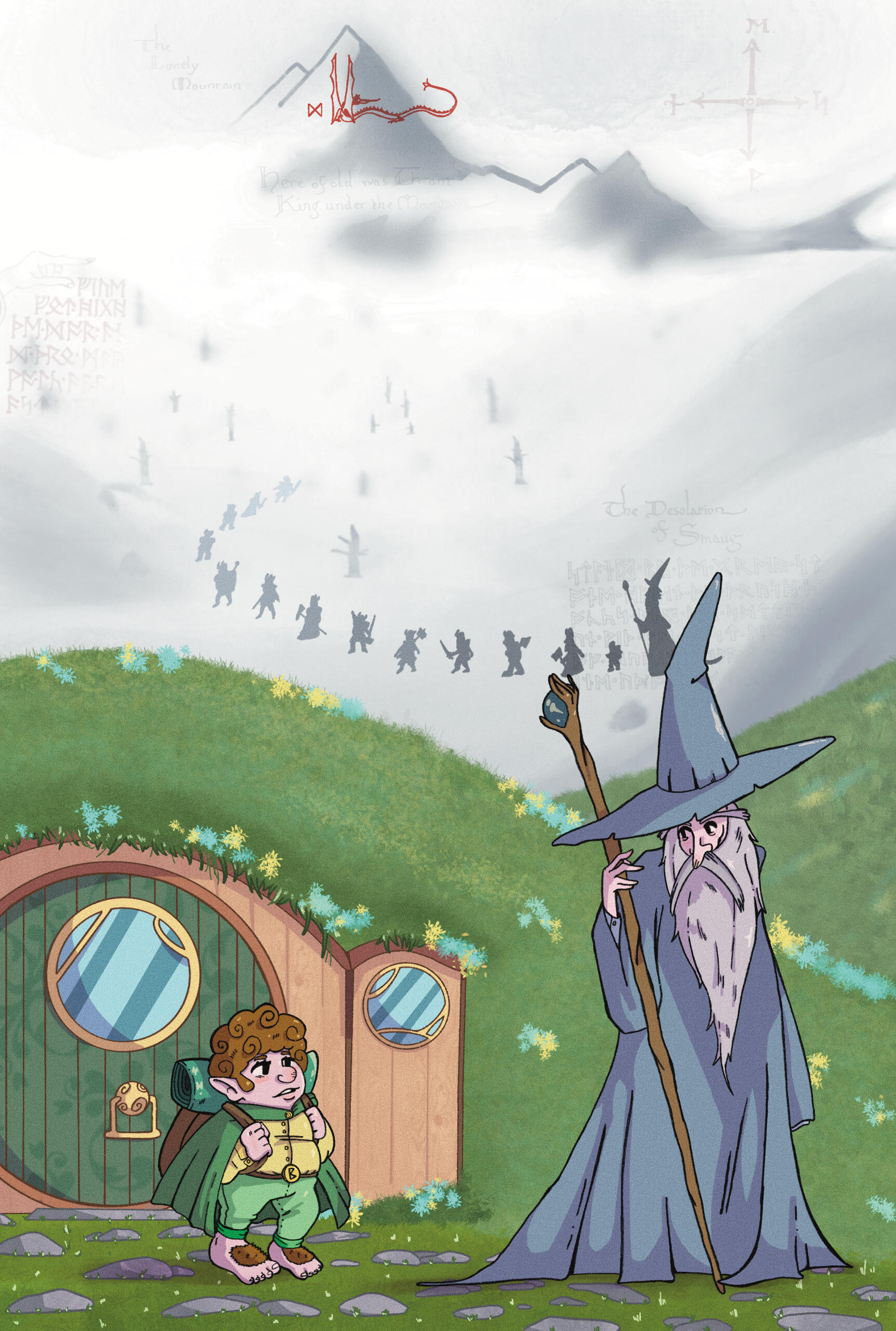 In this project my goal was to show Bilbo's journey from Bag End, in The Shire, to the Lonely Mountain, where Smaug lives and hoards all the treasure from Thorin's Company.