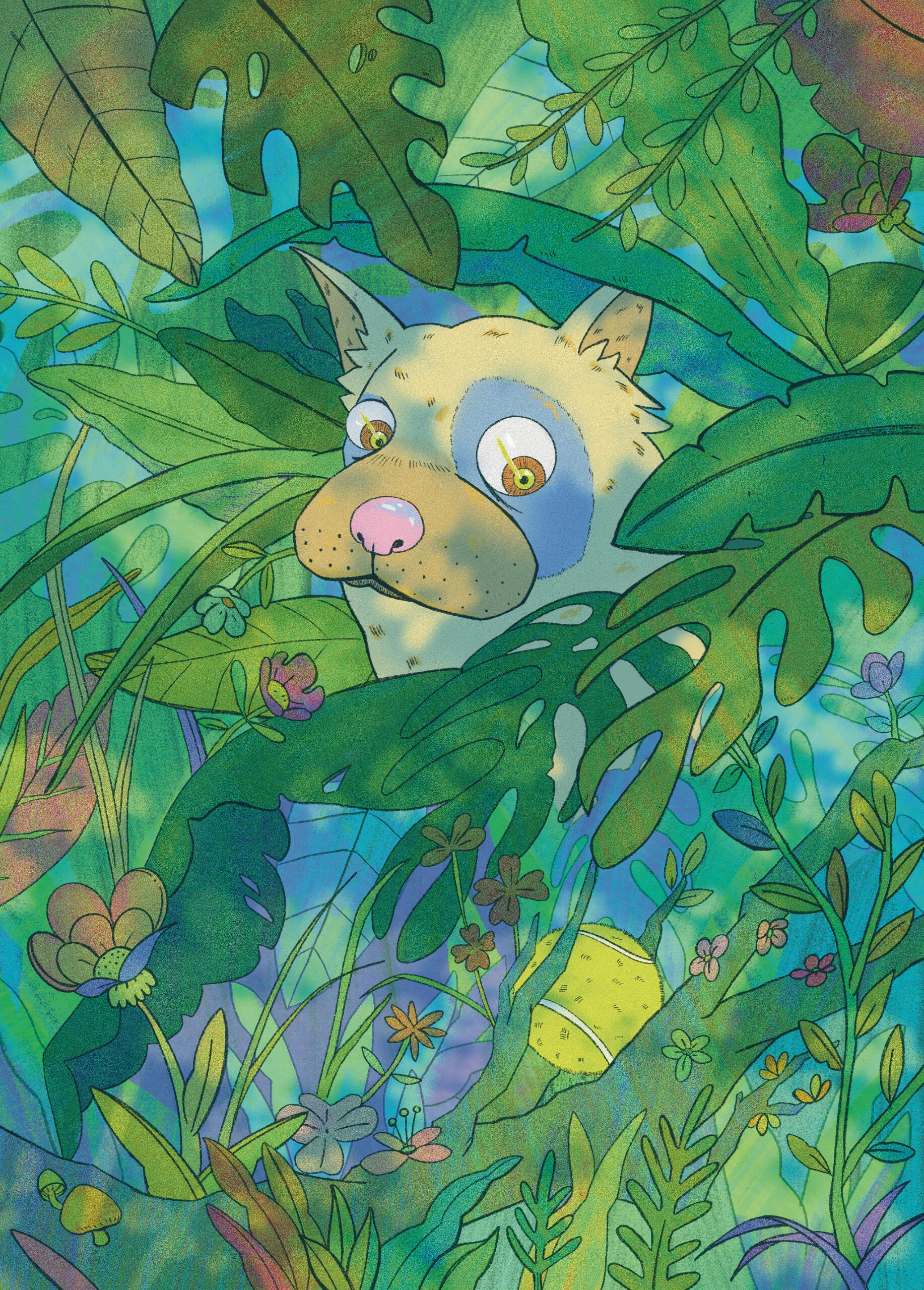 Illustration created for the 2025 'ArteSESC' contest, held in the southern states of Brazil. 'Wild Moment' is an illustration depicting a 'prey and predator' interaction between a domesticated dog and its ball.