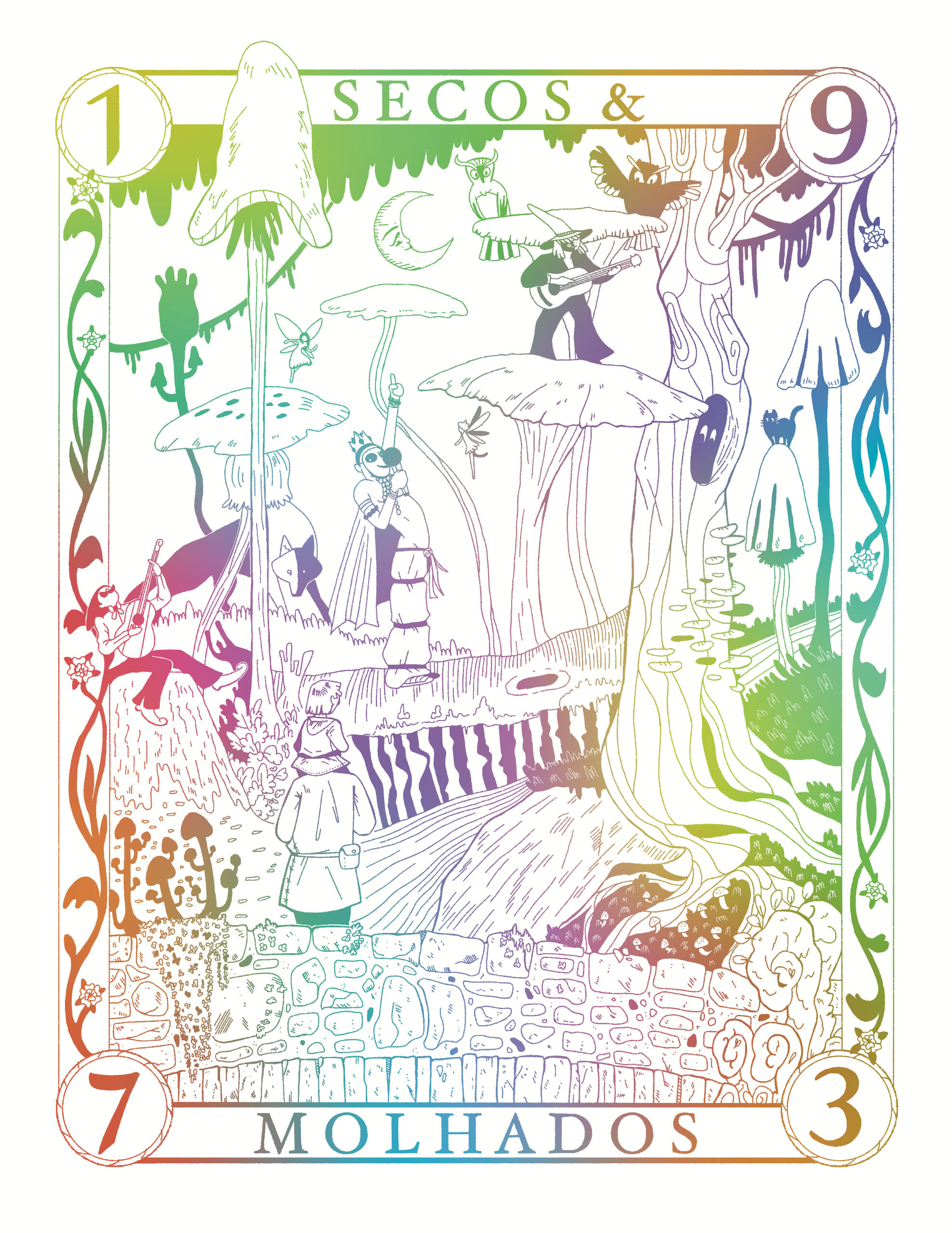 The illustration seeks to capture the almost magical essence of Secos & Molhados' music, blending the psychedelic colors of the 1970s — the setting of the story — with the pure and enchanted perspective of a child witnessing a live performance for the first time. Captivated by the striking performances and the enigmatic lyrics — confusing yet irresistibly engaging — this experience will be etched in their memory forever.