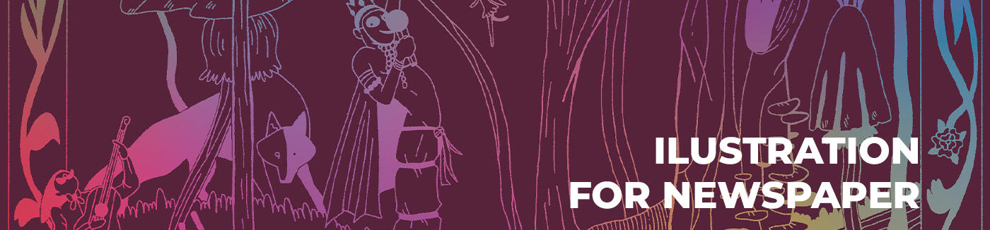 Illustration created to accompany the chronicle "Secos & Molhados: uma Reverência", written by Cármine Porcelli Salvarani. The illustration was unfolded to accompany both a printed newspaper, a digital version and posters in two colors that could be distributed as gifts or through a raffle for newspaper readers.