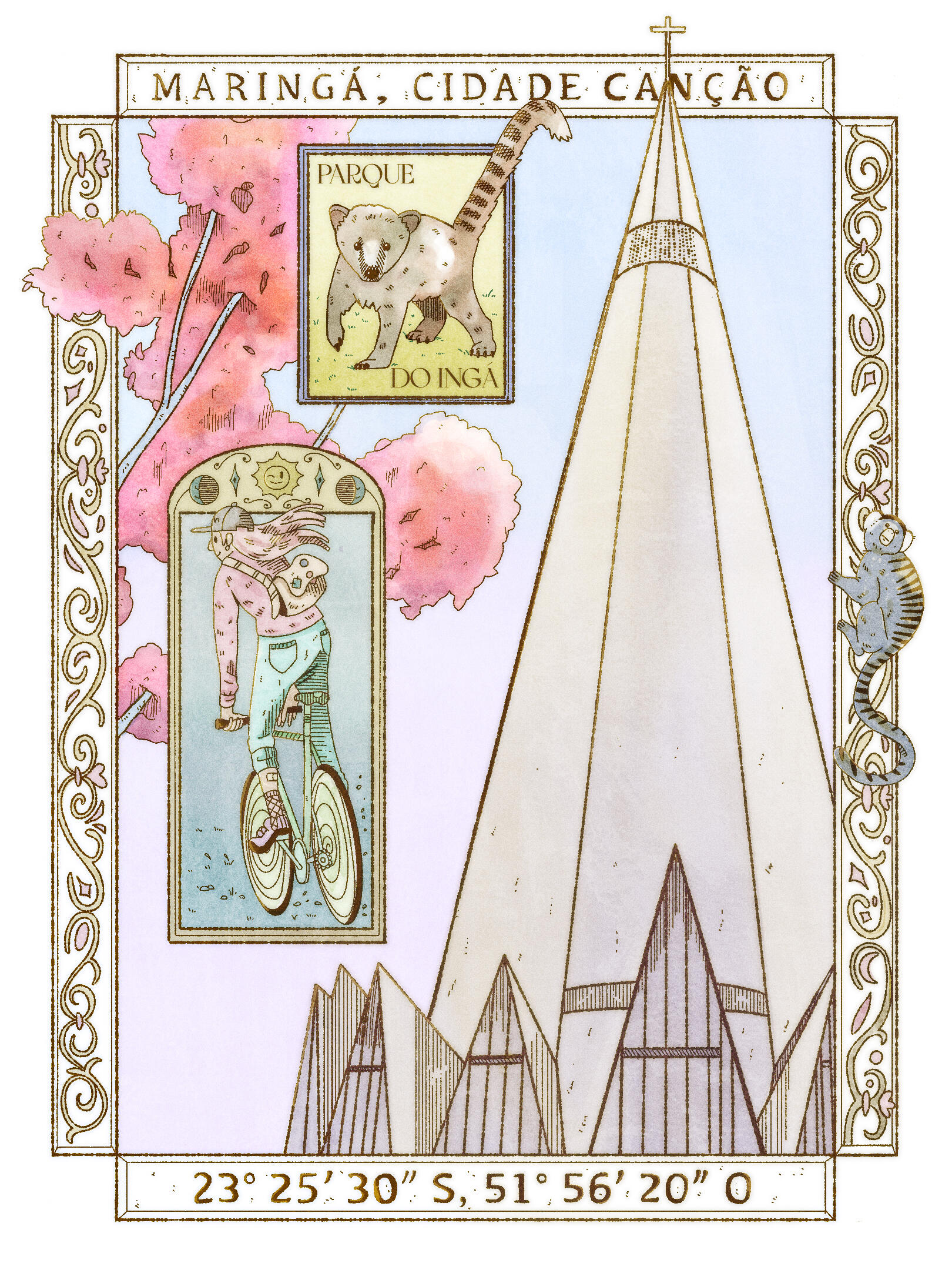 I hope this illustration manages to capture a little of the essence of this wonderful city, both for those who are from here and for those who come from elsewhere. Maringá surprises me every day: in the cool shade of pink ipê trees, in the cyclists, in the unexpected encounters with the wildlife of Parque do Ingá. There is something in this blend of nature and the rhythm of its people that gives this city something uniquely its own.