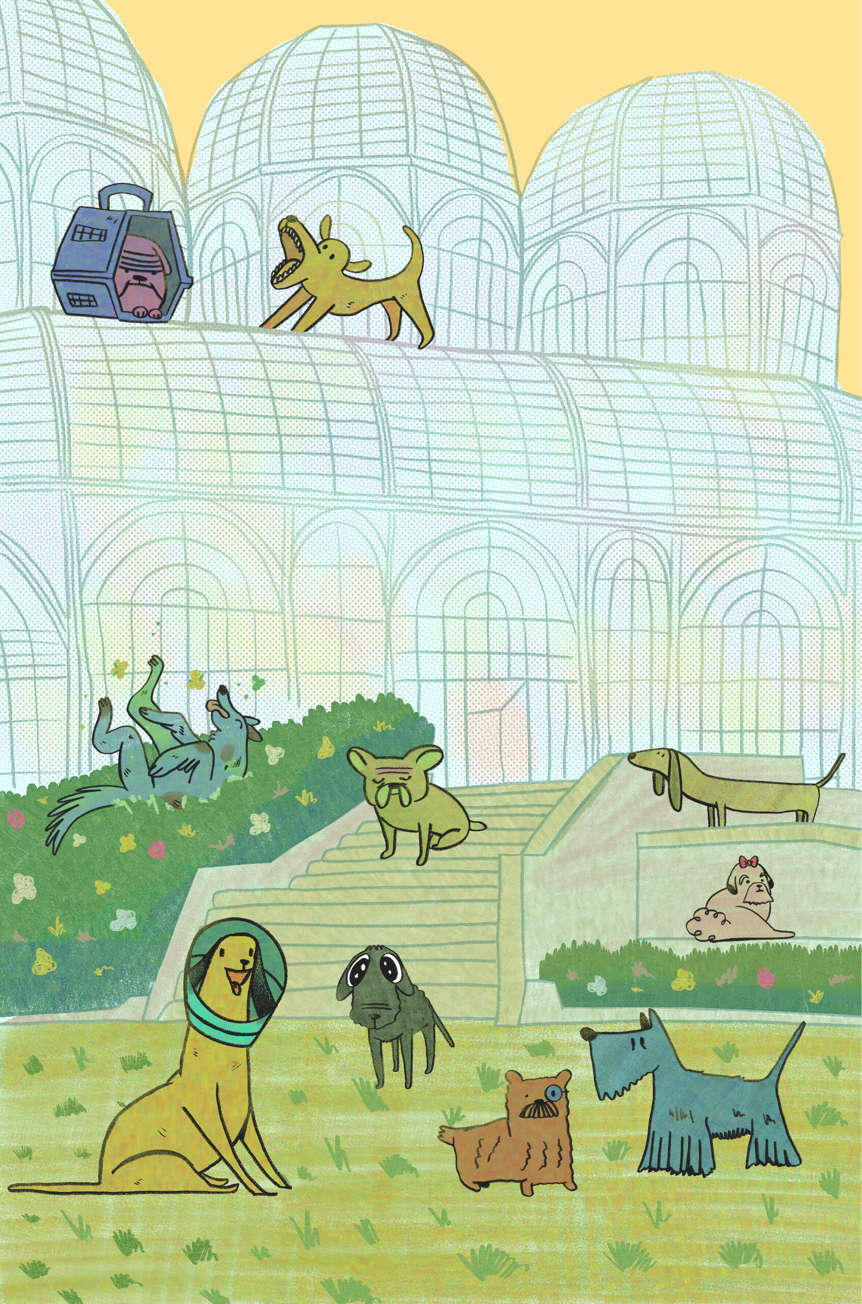 A concept illustration for an adoption fair in Curitiba's Botanic Garden.