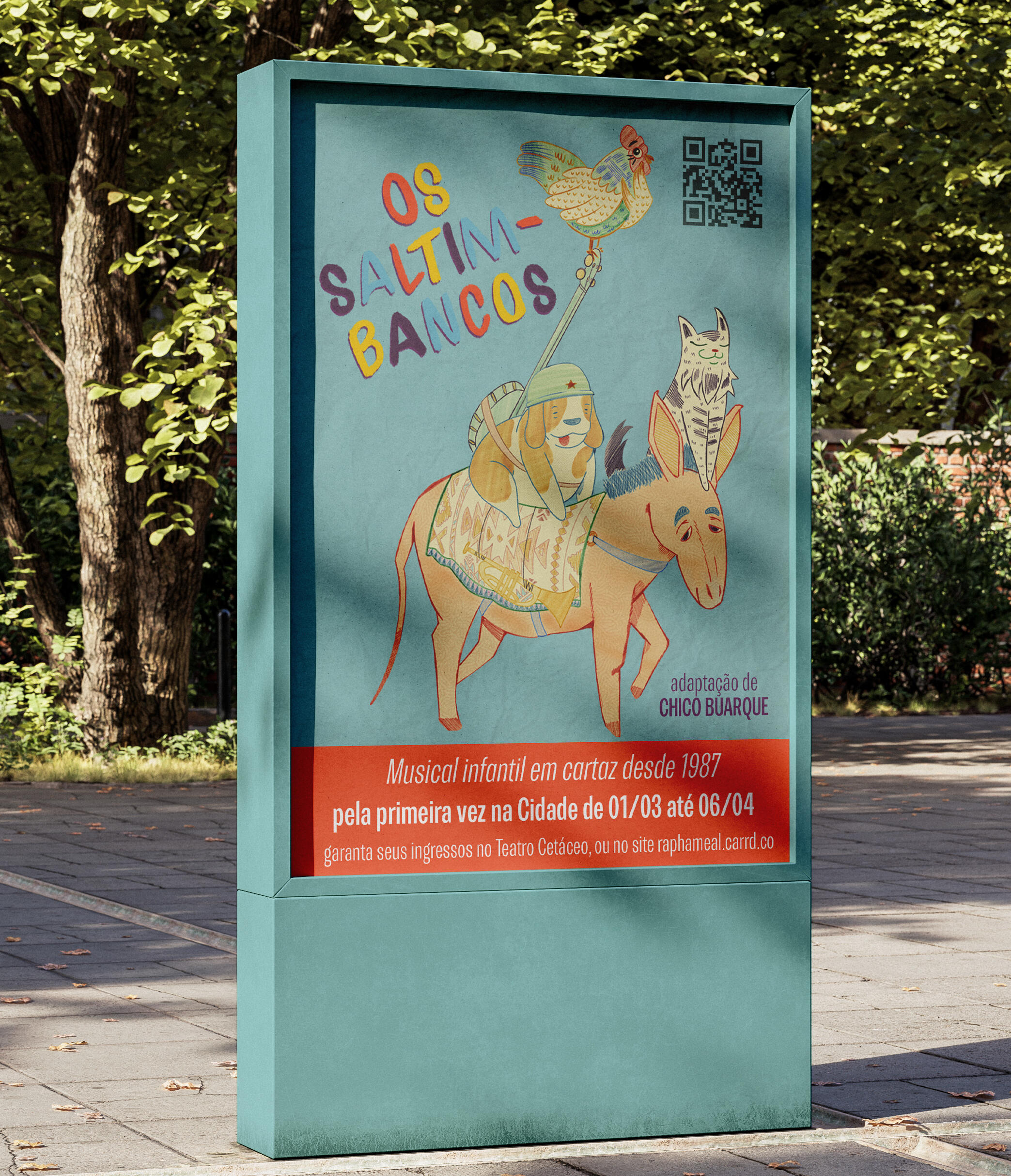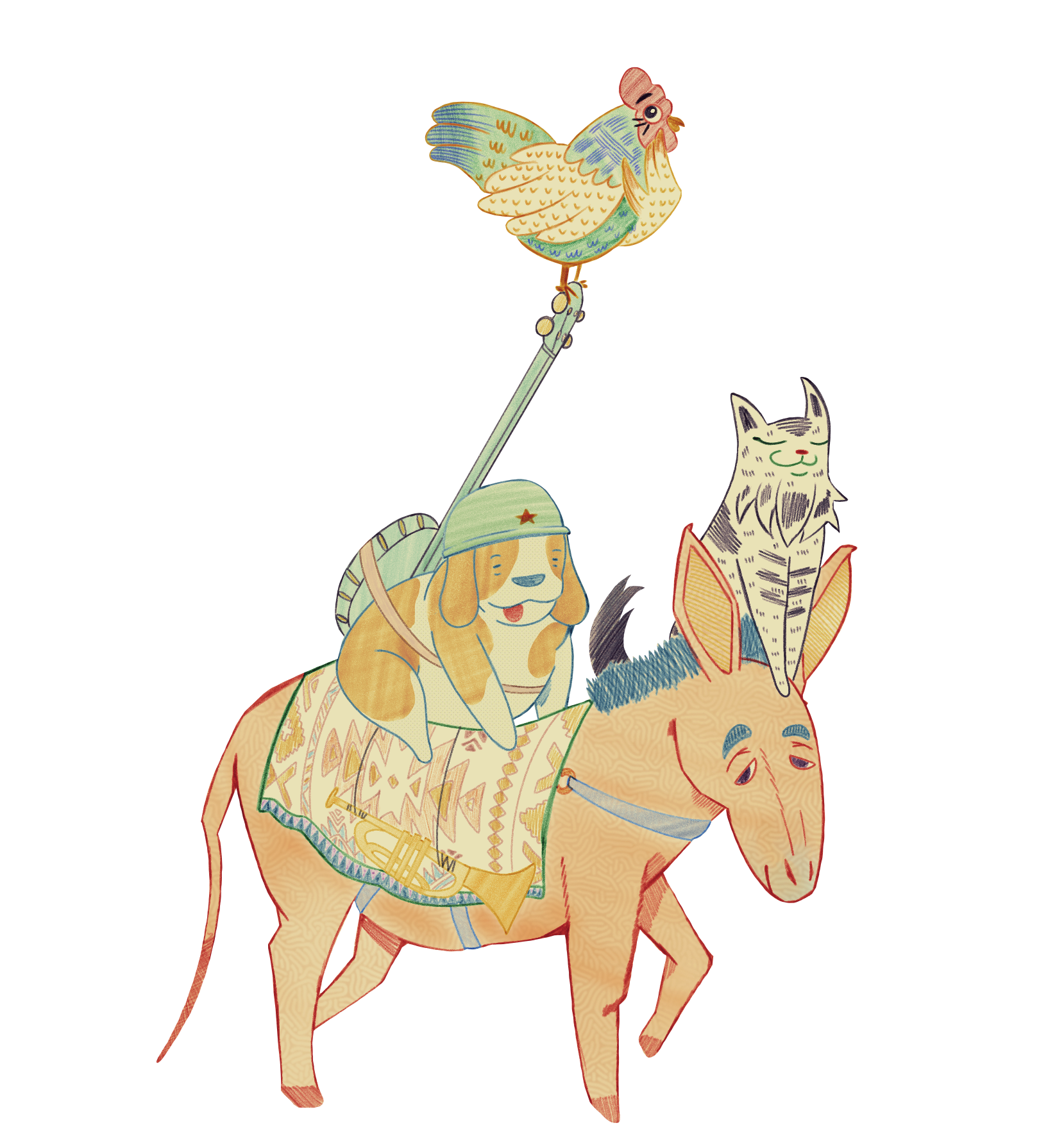 Os Saltimbancos is a Brazilian musical play adapted by Chico Buarque in 1977. The story itself originates from the classic German folktale The Town Musicians of Bremen, collected by the Brothers Grimm.This illustration is inspired by the vibrant energy and timeless message of the play.