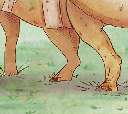 What if dinosaurs still walked among humans? In this illustration, one of the coolest dinosaurs (in my humble opinion), the Parasaurolophus, is portrayed as a calm and gentle animal, serving as the ever-faithful beast of burden for the character who accompanies it on long journeys from one corner of the world to another. Carrying loads and deliveries for those in need, the companionship between these two is something to aspire to.